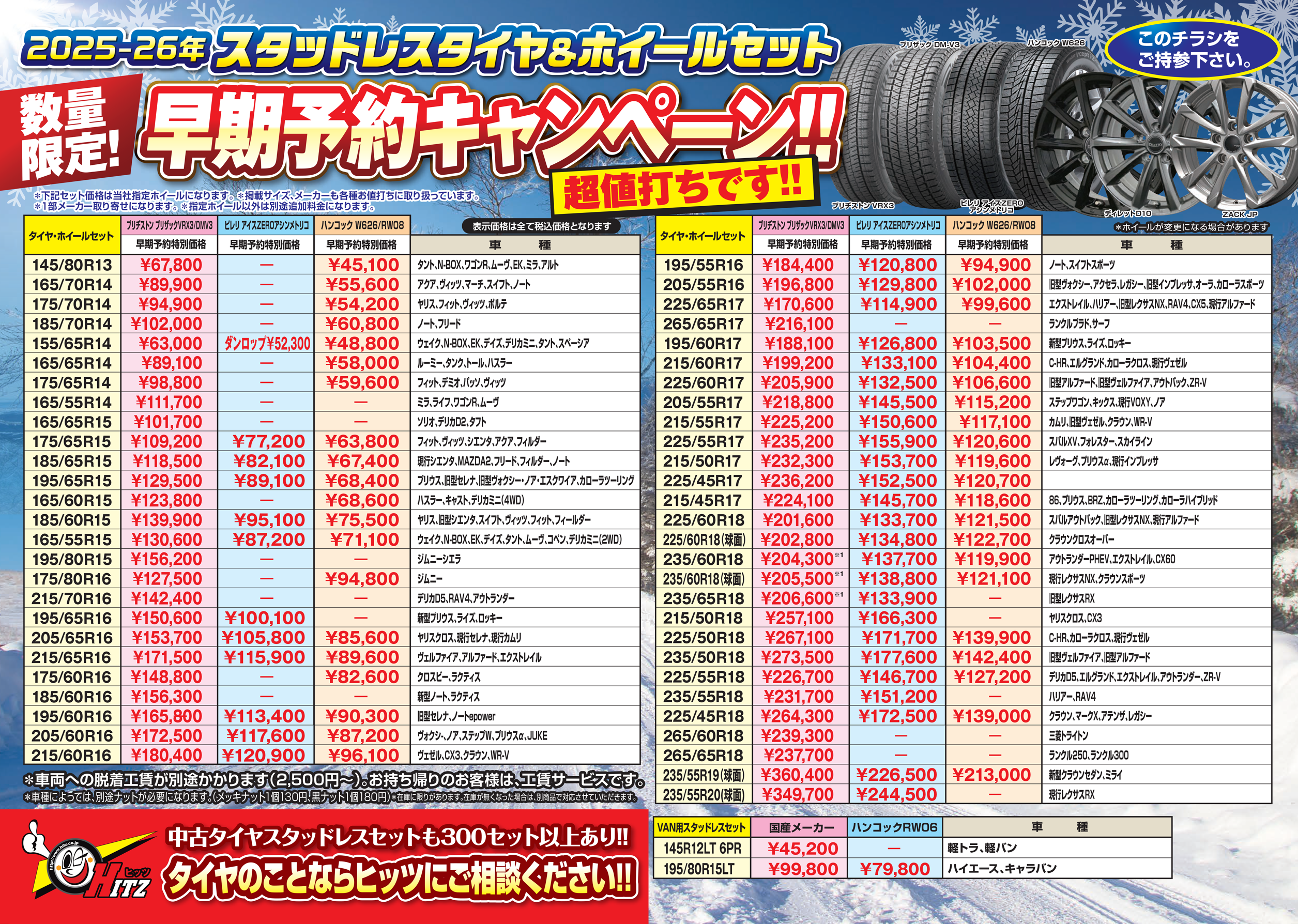 2025-26年 スタッドレスタイヤ早期予約キャンペーン実施中!!